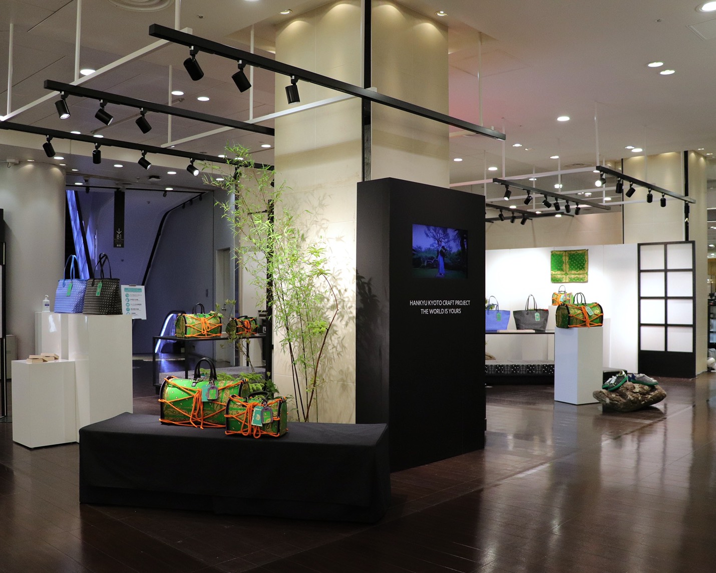 阪急百貨店さまと進めている「KYOTO CRAFT PROJECT」の一環として、 大阪を拠点に国内で高品質なバッグやウェア、シューズを制作し、 アメリカを中心とした感度の高いセレクトショップで販売されている 「THE WORLD IS YOURS」さま向けに鼓形の金襴生地のバッグ製作を アレンジしました。 阪急阪神百貨店さまのプレスリリース