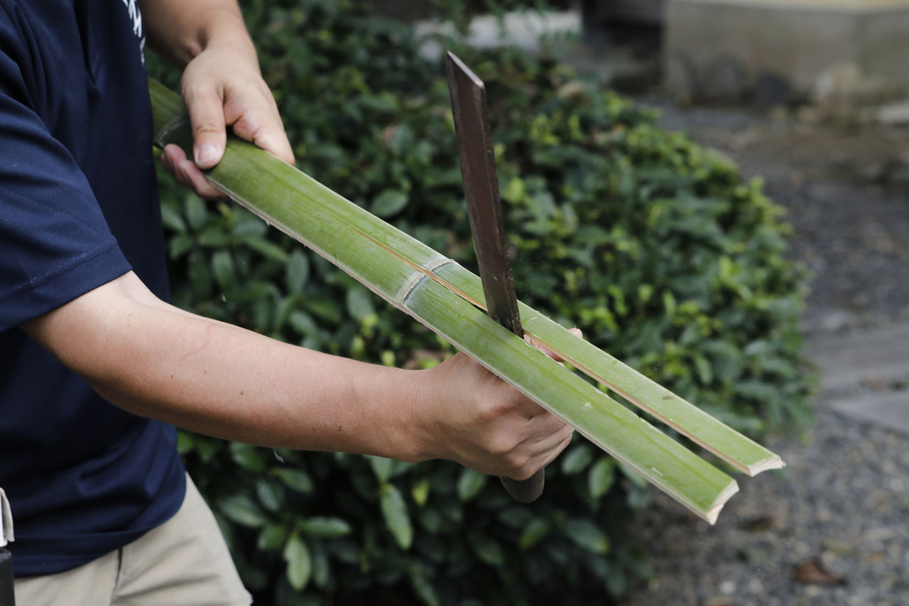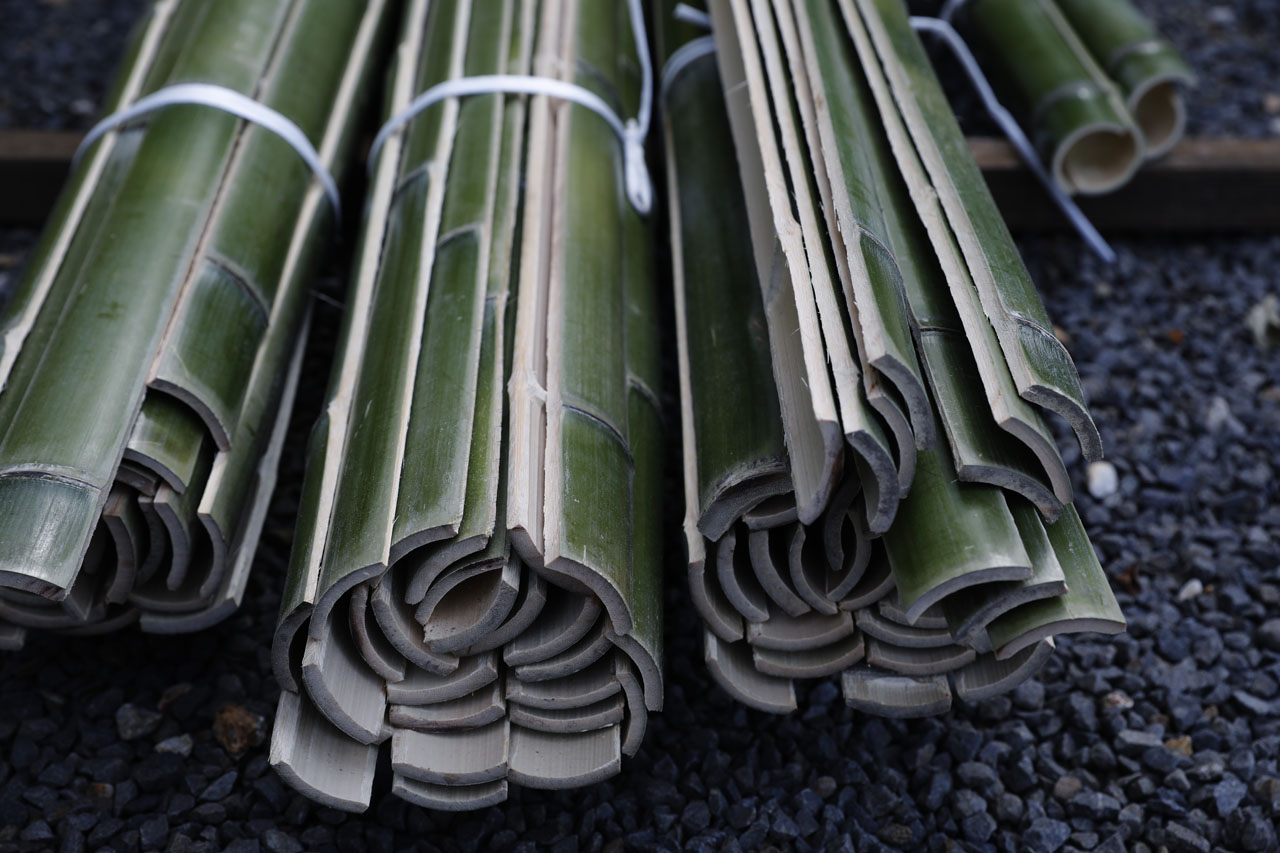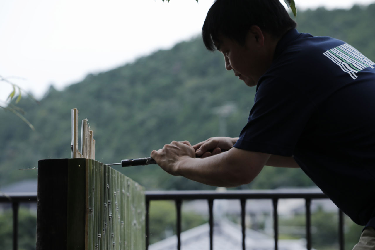 著名な寺社・離宮も手掛ける竹垣職人が竹垣・竹工芸製品はもちろん、竹を有効活用した食器やインテリア等の製作も行っています。竹のしなやかさと頑丈さを最大限に活かしたインスタレーションの製作も可能です。