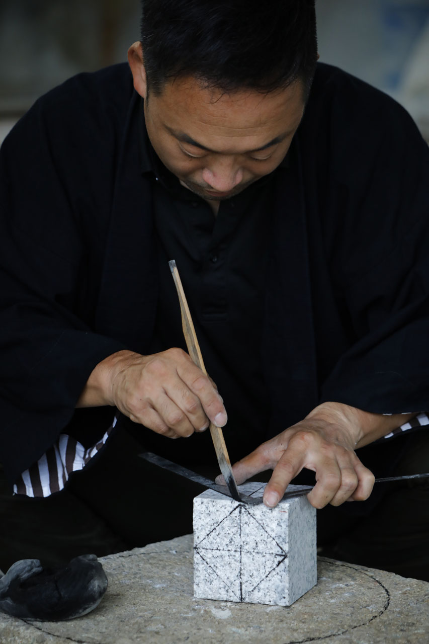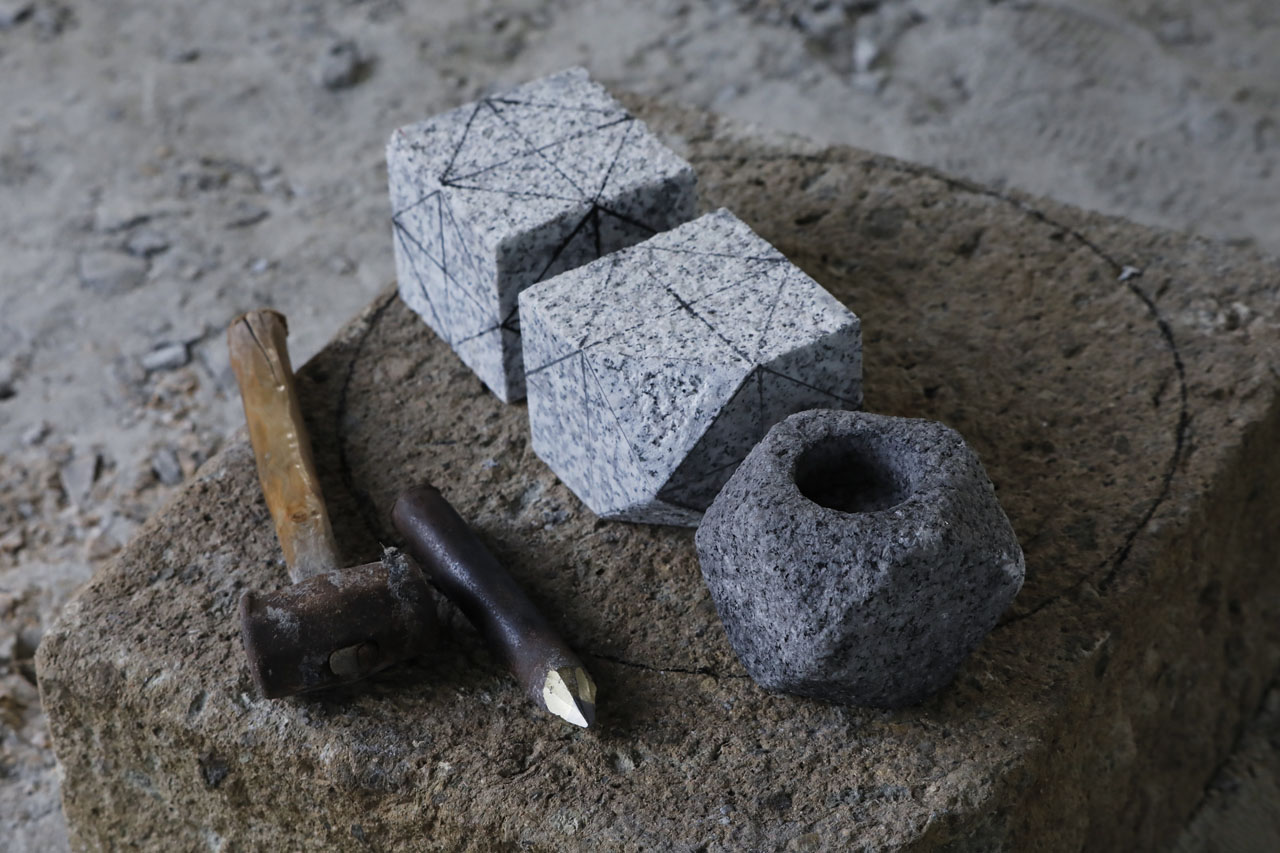 多彩な石灯籠を製作してきた京石工芸の職人が、現代のライフスタイルに合う多彩な製品を制作します。手作業で豊かな風合いに仕上げられた表面が暖かく暮らしを包み、照らします。