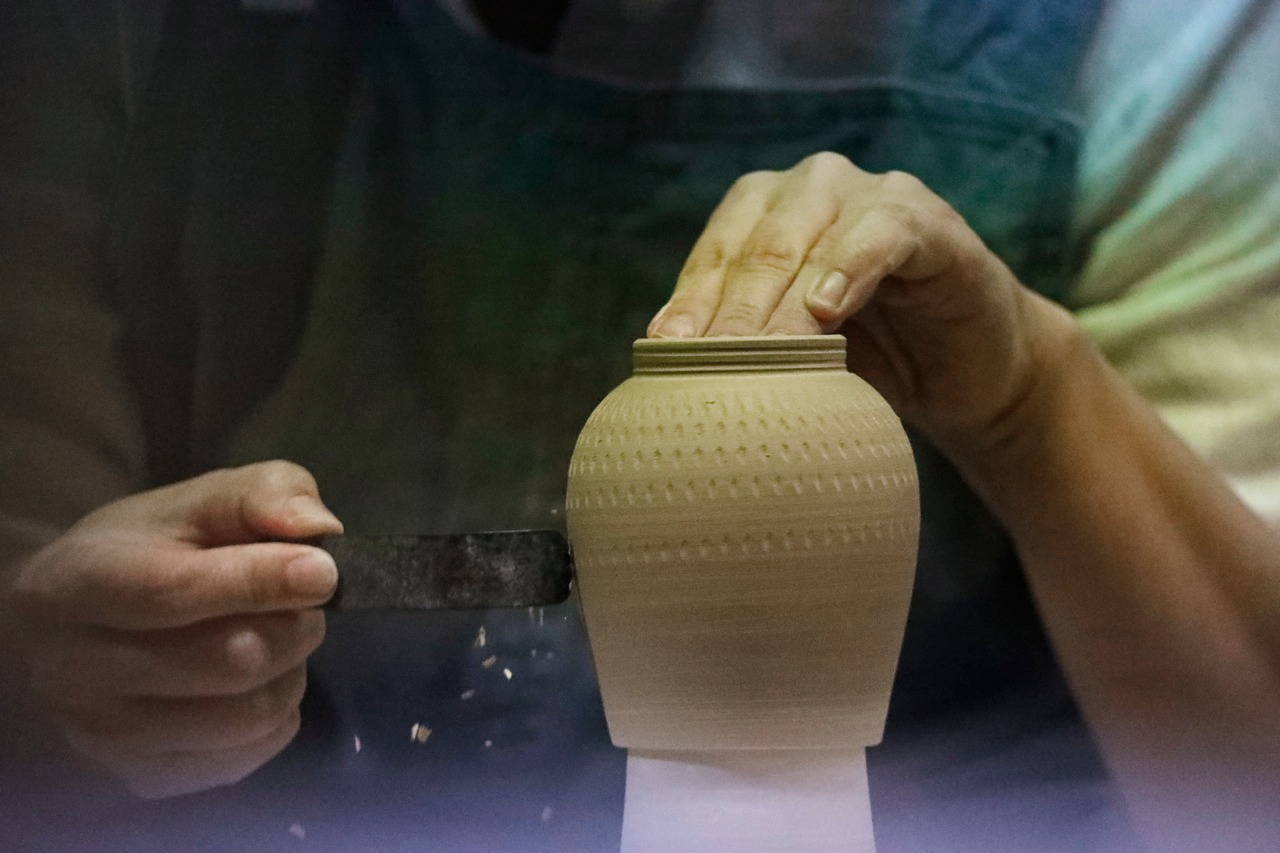 清水焼と福岡の小石原焼の技法を融合させた独自の技法で焼き上げる上品で、かつ、暮らしにも馴染む器を製作します。縄文時代の文化にヒントを得た独自の作品シリーズの製作も可能です。